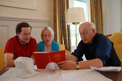 Today Nina and Robert met with the priest, Ingemar Pettersson, for Lindesberg's Church (Lutheran).  The meeting was to discuss the proposed Svenglish (swedish-english) ceremony.  Robert has no idea of what he is getting himself in to... He only has to say "I will" at the proper times.  Nina replies in swedish so he will never be exactly sure of what she said.  A text of the ceremony will be provided in both swedish and english to all guest... but Andree prefers that you try to read and repeat along the swedish version.  You can apply for a learning credit after the ceremony.