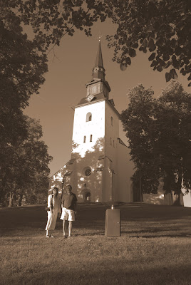 To the right is a picture of the Lindesberg Kyrka (Church) where the wedding will take place. This is one of the pictures Andree, Kurt and Jonas did while trying to figure out the best position for the bride and groom on the wedding day for photos. We liked this shot because of the angle of the church and the slope of the hill et al. I will be the official photographer... along with Anthony, Houston and Angele for backup...